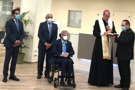 Con la benedizione del vescovo monsignor Corrado Sanguineti è stata aperta al pubblico questa mattina la nuova Area Accettazione e il nuovo blocco operatorio dell’IRCCS Maugeri di Pavia. Nessuna cerimonia di inaugurazione, solo una preghiera, per volontà del management, come ha spiegato nel suo intervento l’amministratore delegato degli Istituti Clinici Scientifici Mario Melazzini. “Abbiamo attraversato col sistema Paese quattro mesi sconvolgenti, e Maugeri ha messo in campo tutte le forze del suo straordinario personale per fornire risposte di salute contro un nemico inizialmente sconosciuto, che abbiamo imparato ad affrontare, che è ancora presente. Non potevamo festeggiare il completamento di lavori per noi importanti", ha detto Melazzini davanti a una rappresentanza del personale, "perché la nostra parte emotiva mescola ancora con le immagini di gioia per chi ha superato la pandemia col quelle di dolore per chi non ce l’ha fatta. Abbiamo voluto un momento di preghiera, per questo territorio ancora scosso, per il nostro personale, che non finirò mai di ringraziare per la generosità con la quale ha operato senza risparmiarsi, per condividere con loro questo nuovo inizio, prezioso perché migliora i servizi che possiamo offrire ai nostri pazienti”.